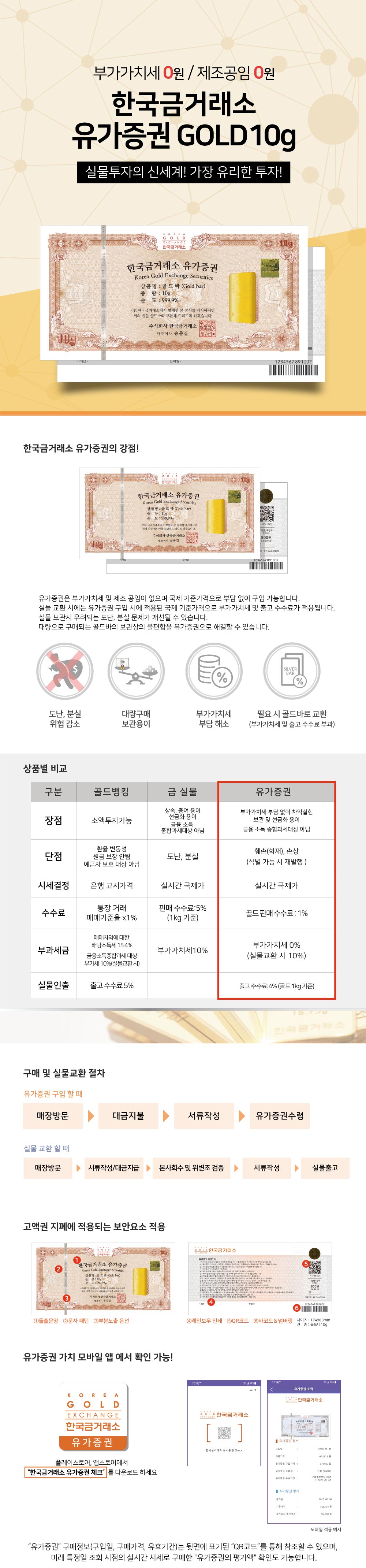 한국금거래소 유가증권 골드바 10g(실 판매가는 국제 금값과 환율에 의해 변동됩니다. 아래 고시가와 다를 수 있습니다.)